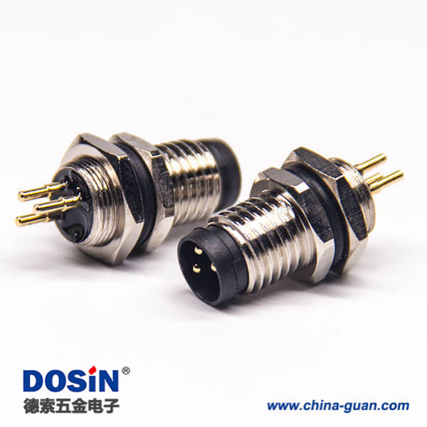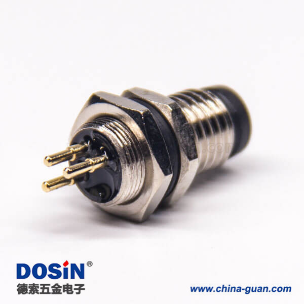 料號:DOSIN-868-0535 標簽:M8,3芯,板端插座,公頭,直式,后鎖板,面板安裝,插板