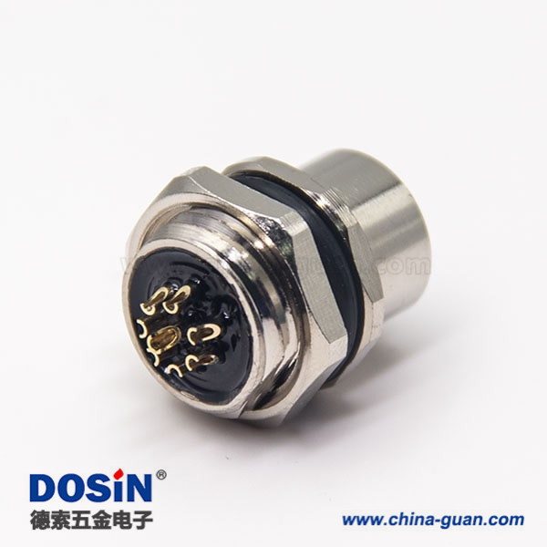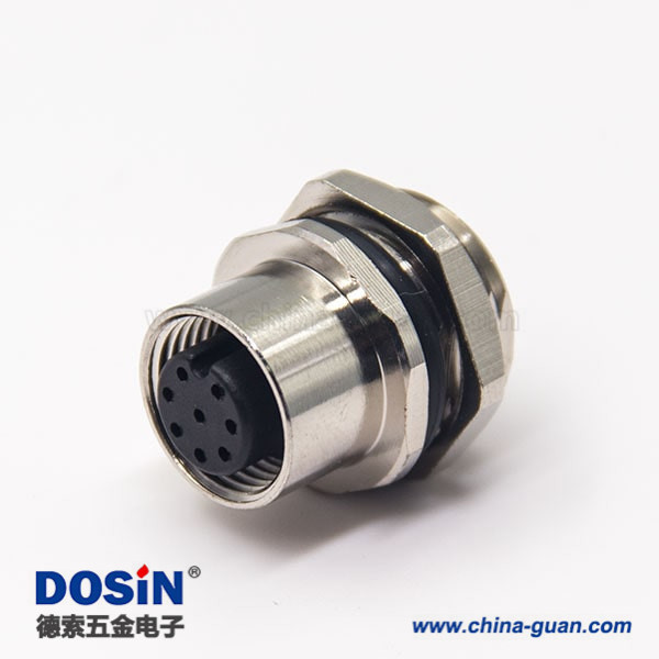 料號:DOSIN-868-0593 標簽:M12板端插座,A編碼,8芯,直式,母頭,焊線,后鎖板,面板安裝