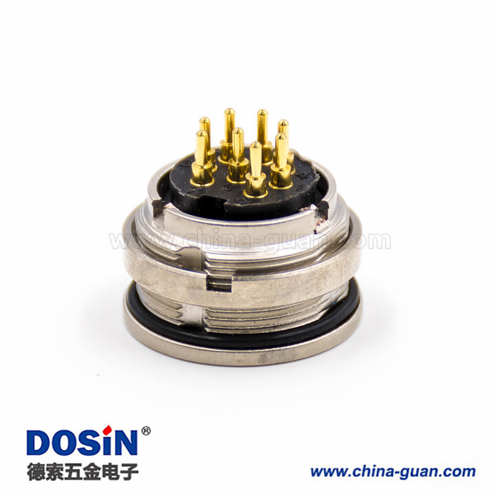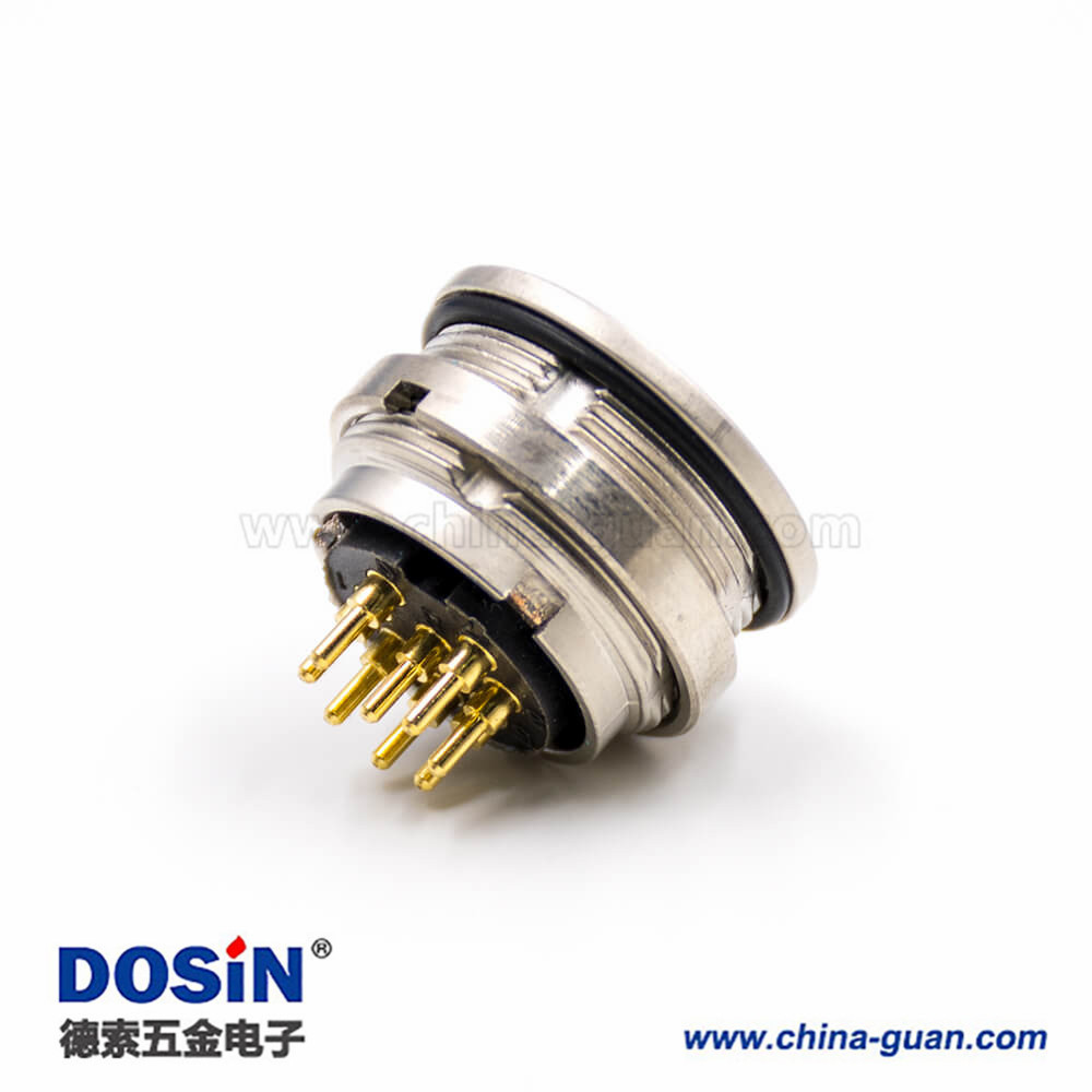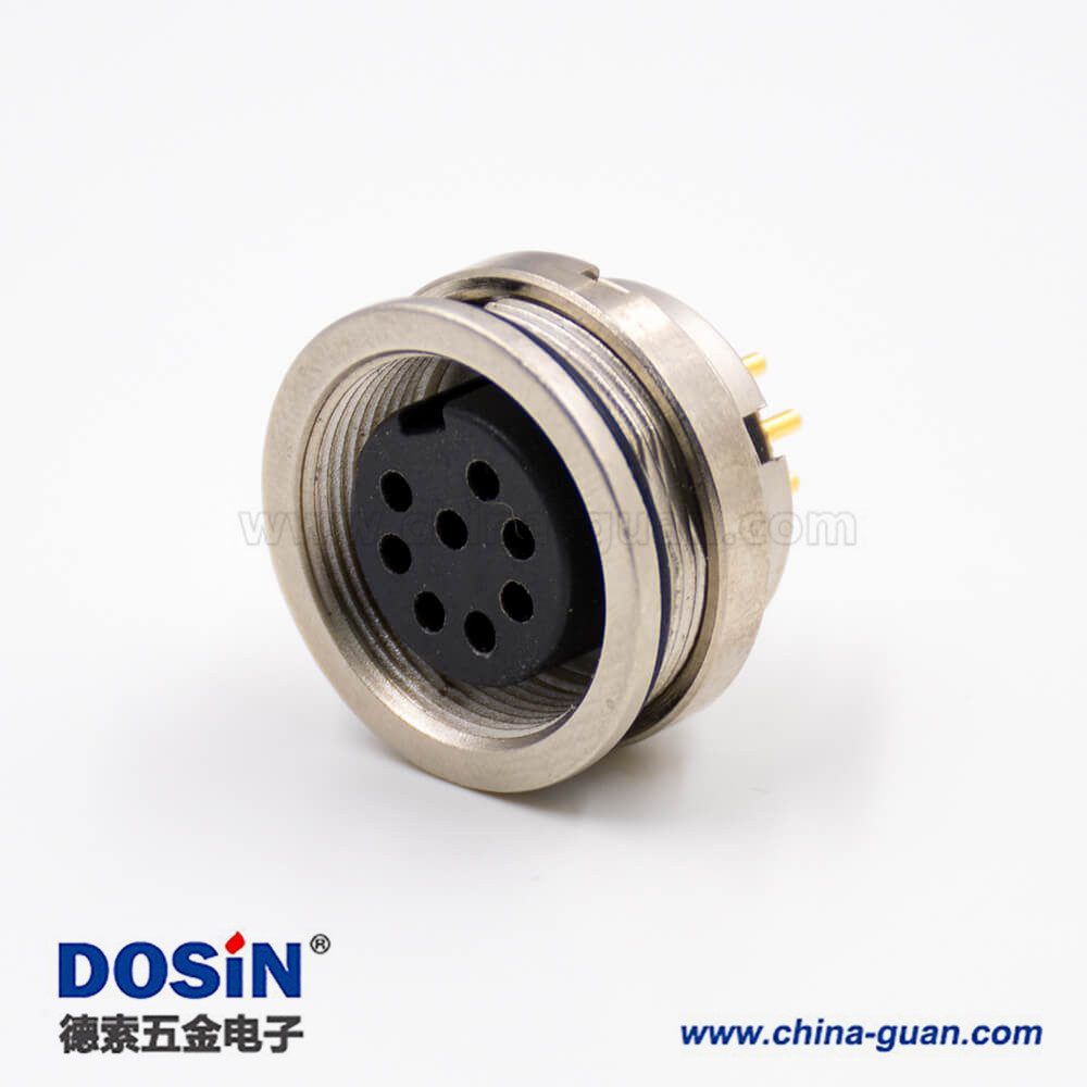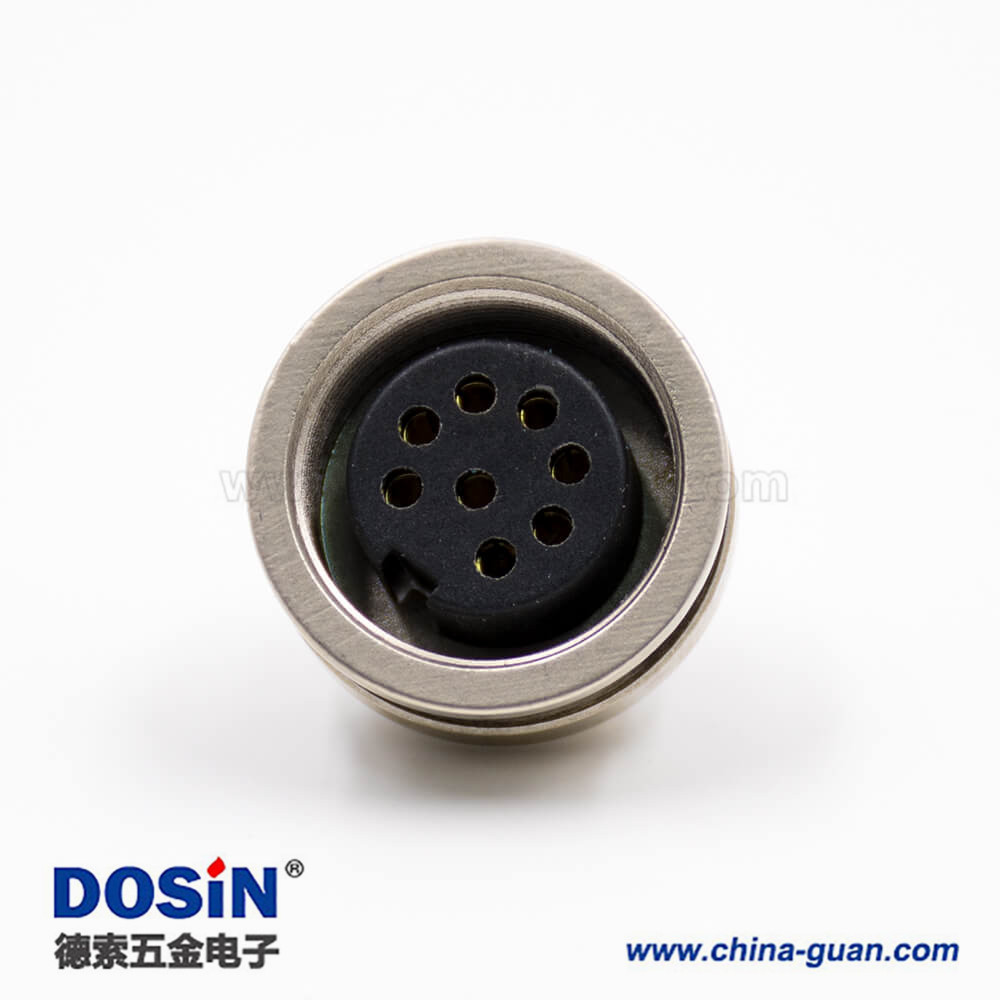 圓8芯插座引腳M16母頭A扣直式穿墻PCB板連接器板端插座焊接