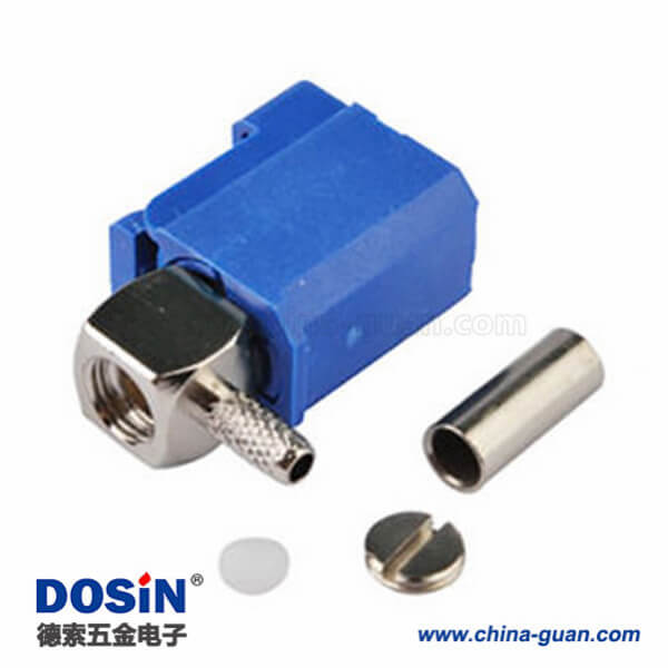 Fakra連接器母頭塑料外殼C型彎式藍(lán)色壓接焊接接線RG174 RG316連接器