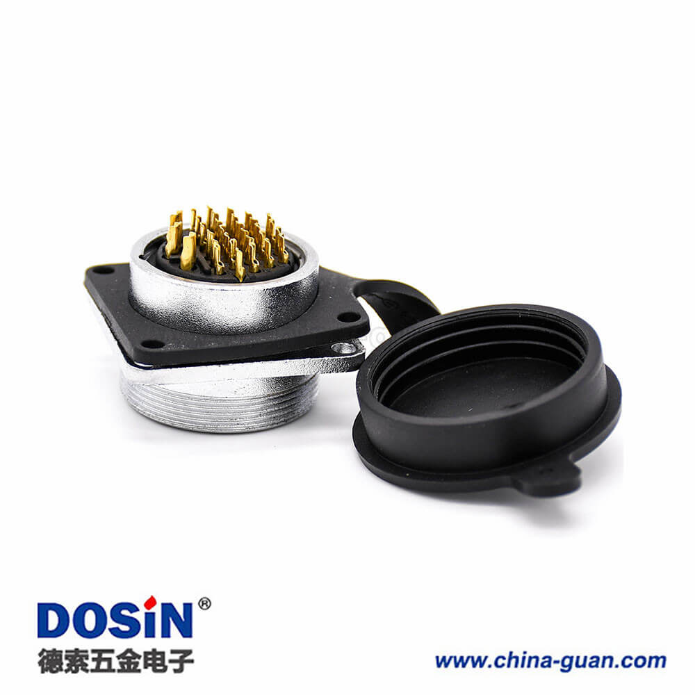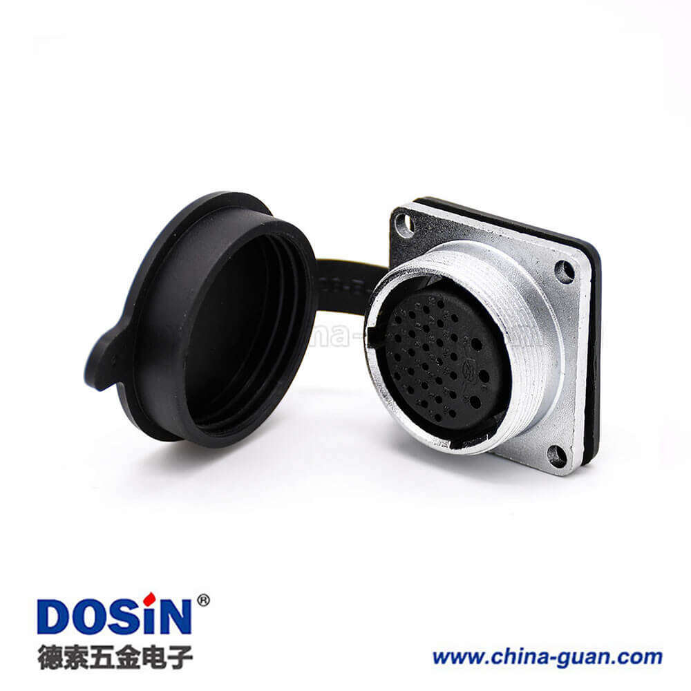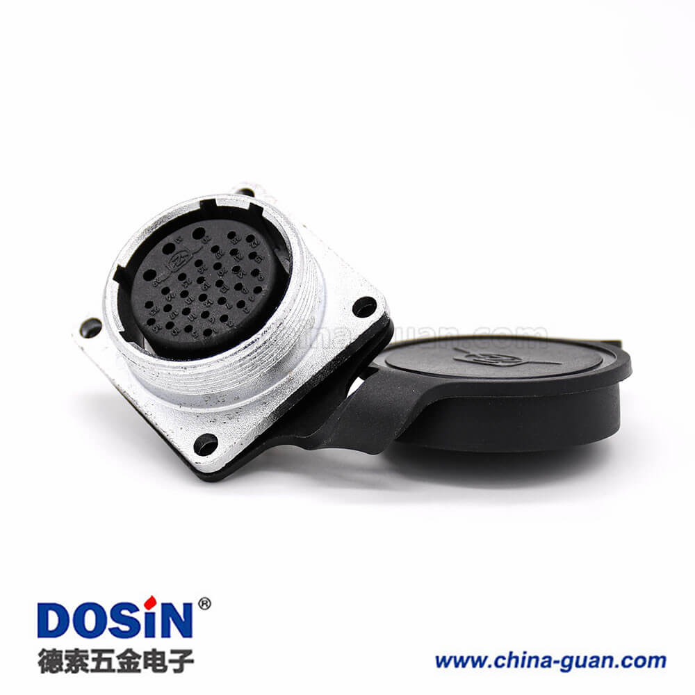 插座母頭P28 31芯直式方型法蘭帶防塵蓋連接器