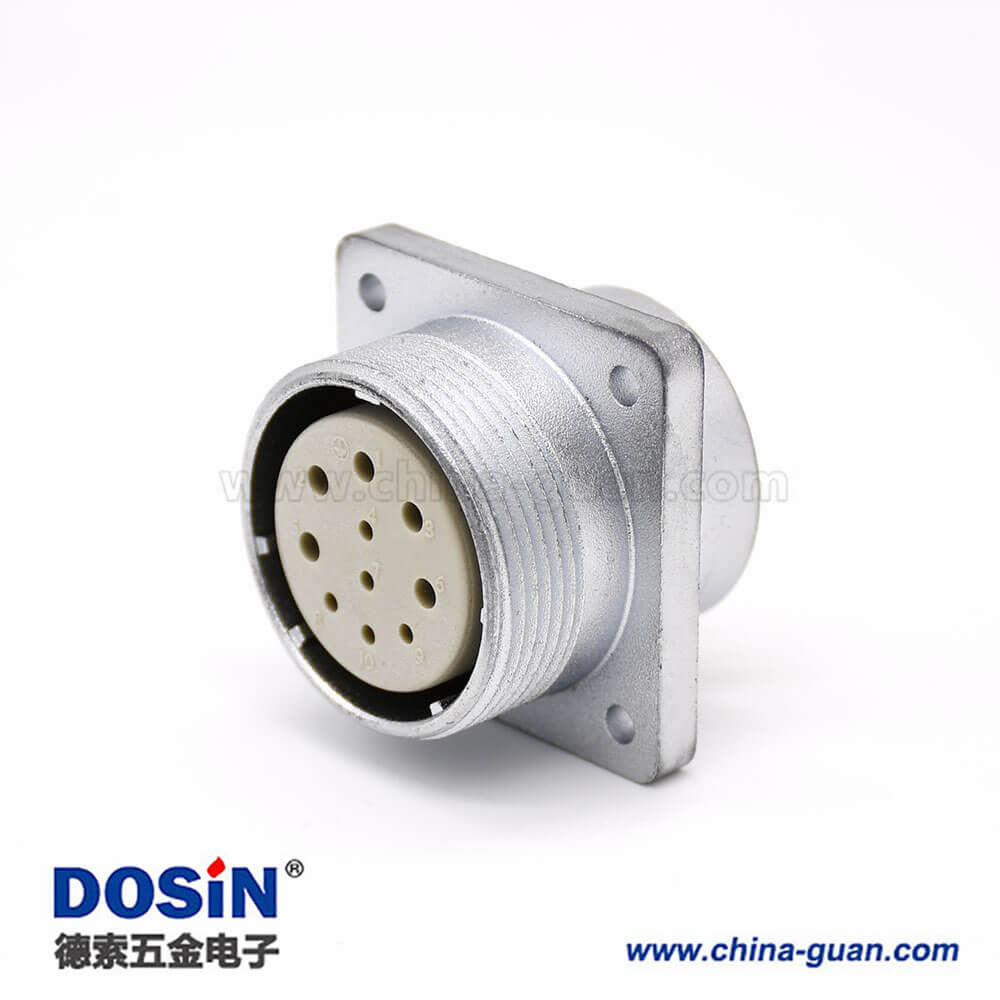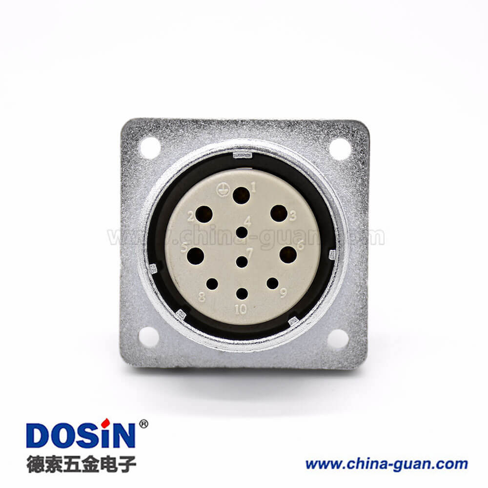 連接器P32 10芯母頭直式插座方形四孔法蘭安裝焊杯接線