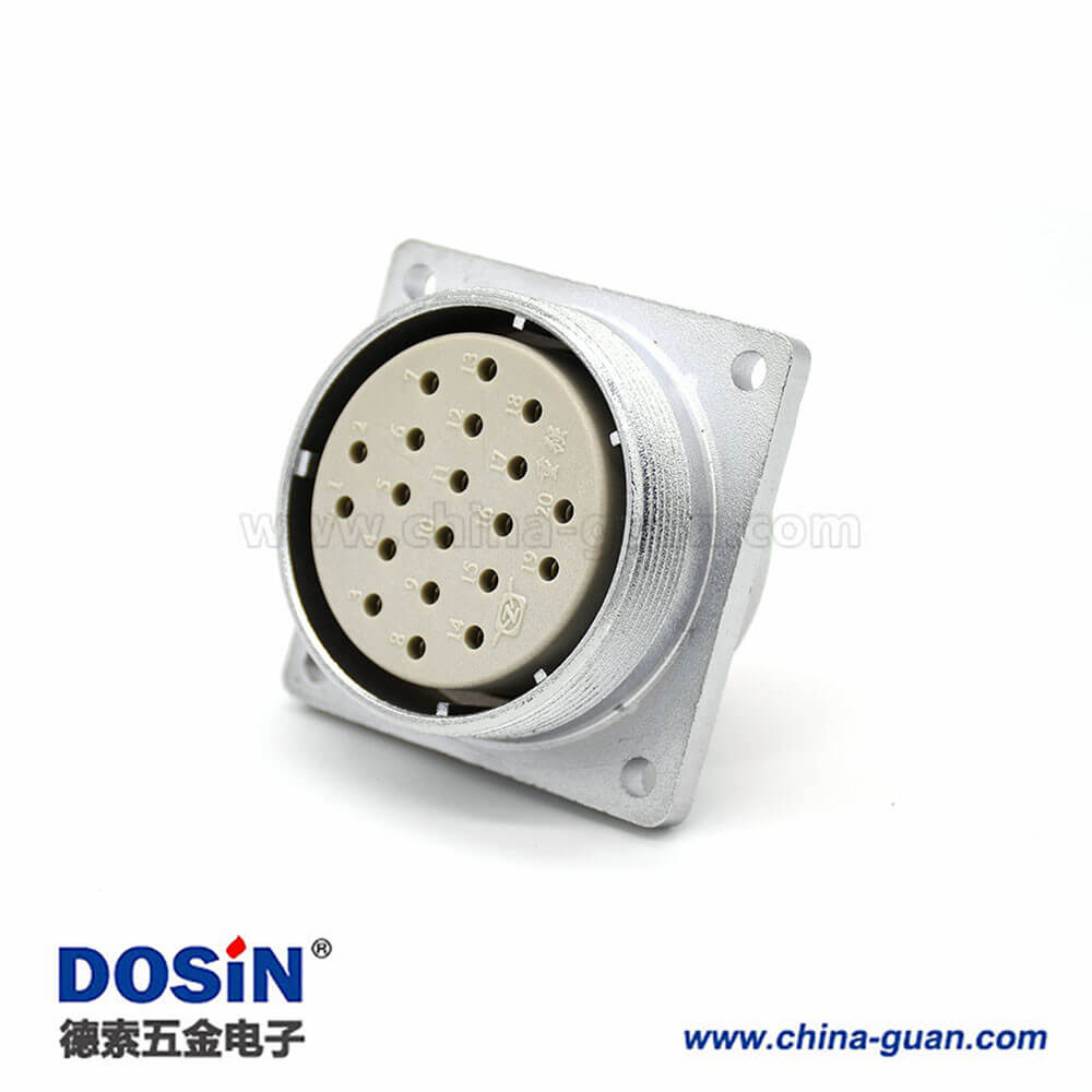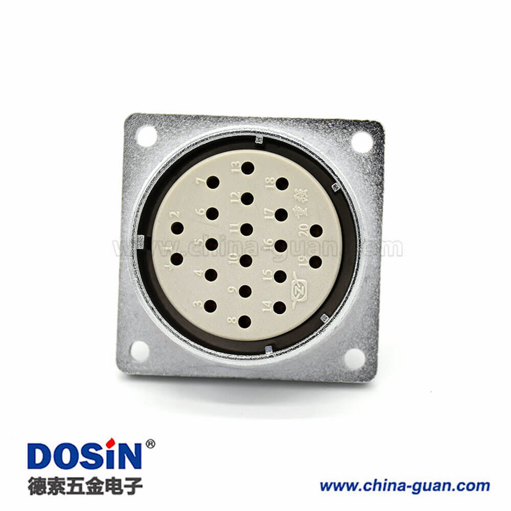 矩形20芯插座P40 20芯母頭直式四孔法蘭連接器