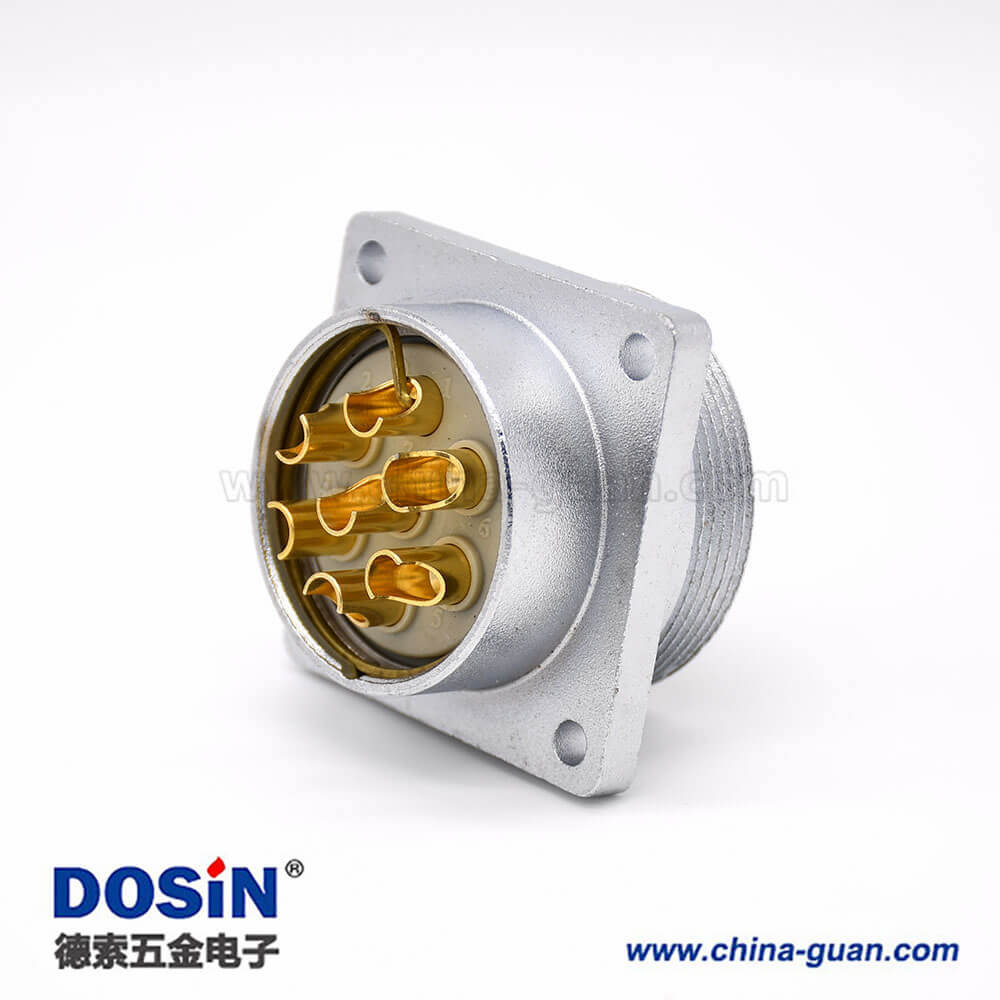 P40公頭7芯直式插座方形四孔法蘭安裝焊杯接線