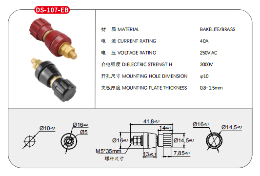 英文描述:Binding Post Terminal Connectors,40A,Outer Screw(M5), Red