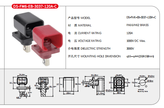 該產(chǎn)品采用PA66阻燃材料外殼。它具有絕緣性和阻燃性。導(dǎo)電部件由黃銅制成,具有很強(qiáng)的導(dǎo)電性,不易過(guò)熱。端子連接器由銅制成,這是一種高質(zhì)量的材料,可以保證產(chǎn)品的耐用性和穩(wěn)定性,使其可以長(zhǎng)期使用。