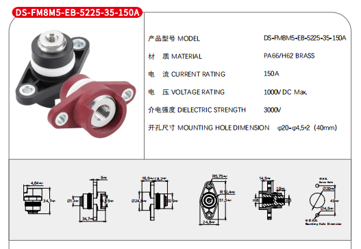法蘭150A穿墻式接線柱內(nèi)螺紋M8內(nèi)螺紋M5紅色