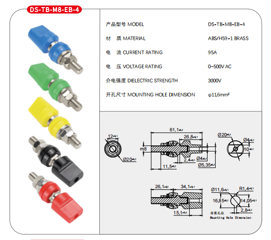 英文描述:Binding Post Terminal Connectors,95A,Outer Screw(M8), Red