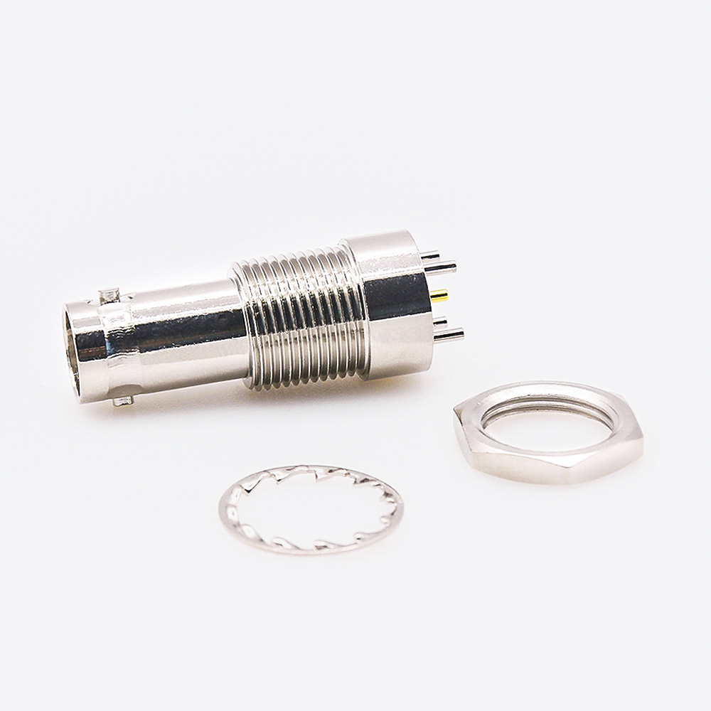 BNC面板連接器母頭直型前鎖穿墻PCB安裝插孔