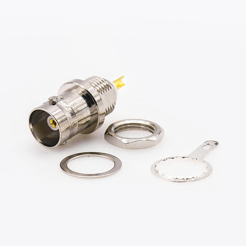 BNC連接器接地直型母頭面板安裝后鎖穿墻焊接接線
