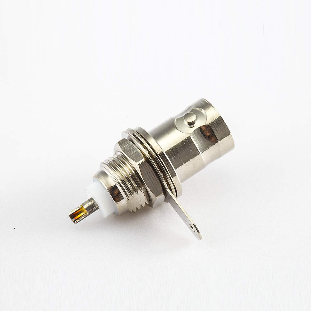 面板安裝的后鎖穿墻BNC母頭180度連接器焊接接線50ohm接地