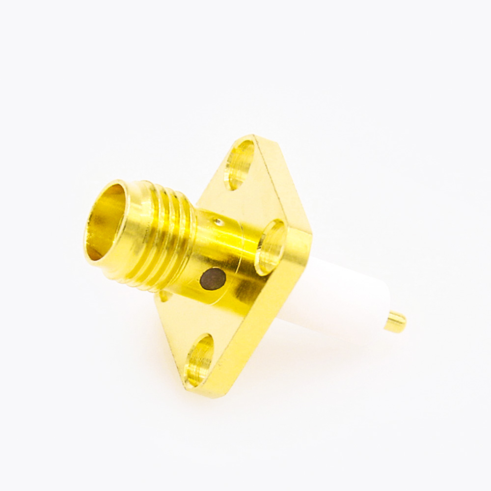 SMA面板安裝連接器母頭直式焊板PCB安裝4孔法蘭