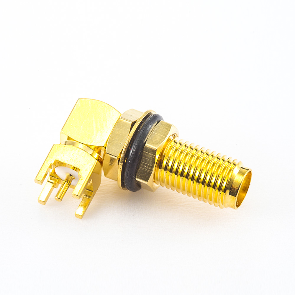 SMA母頭PCB安裝連接器彎式防水前鎖穿墻插孔