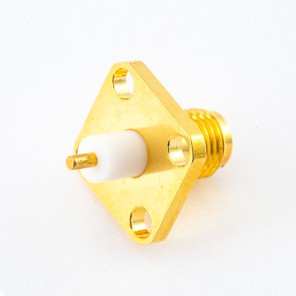 SMA連接器PCB安裝母頭直式面板安裝焊板4孔法蘭