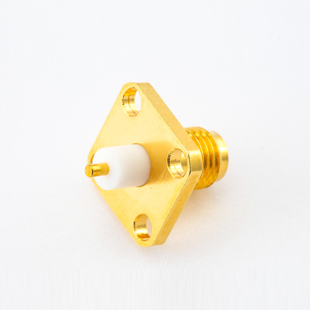 PCB焊板SMA連接器母頭直式面板安裝4孔法蘭