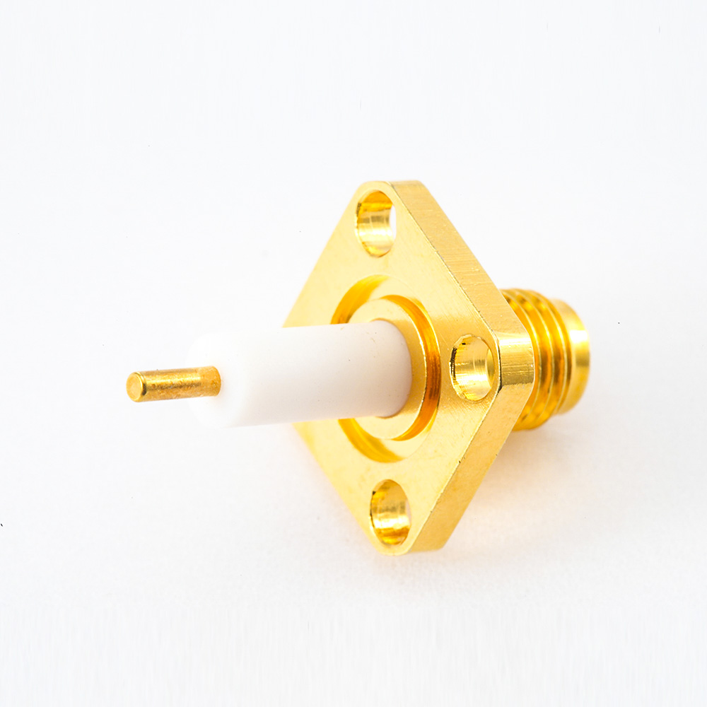 PCB安裝SMA連接器母頭直式焊板4孔法蘭