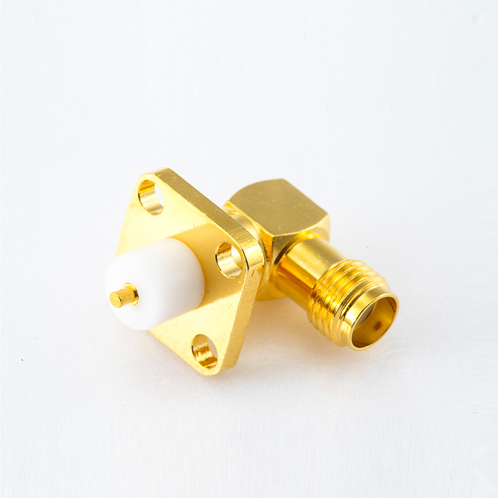 SMA連接器插孔母頭插座50歐姆彎式PCB安裝焊板4孔法蘭