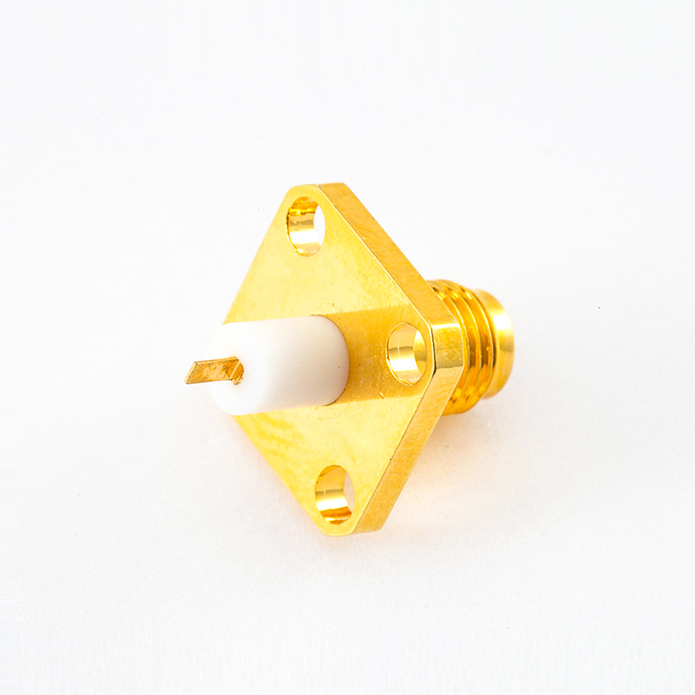 PCB焊板SMA連接器母頭直式面板安裝4孔法蘭