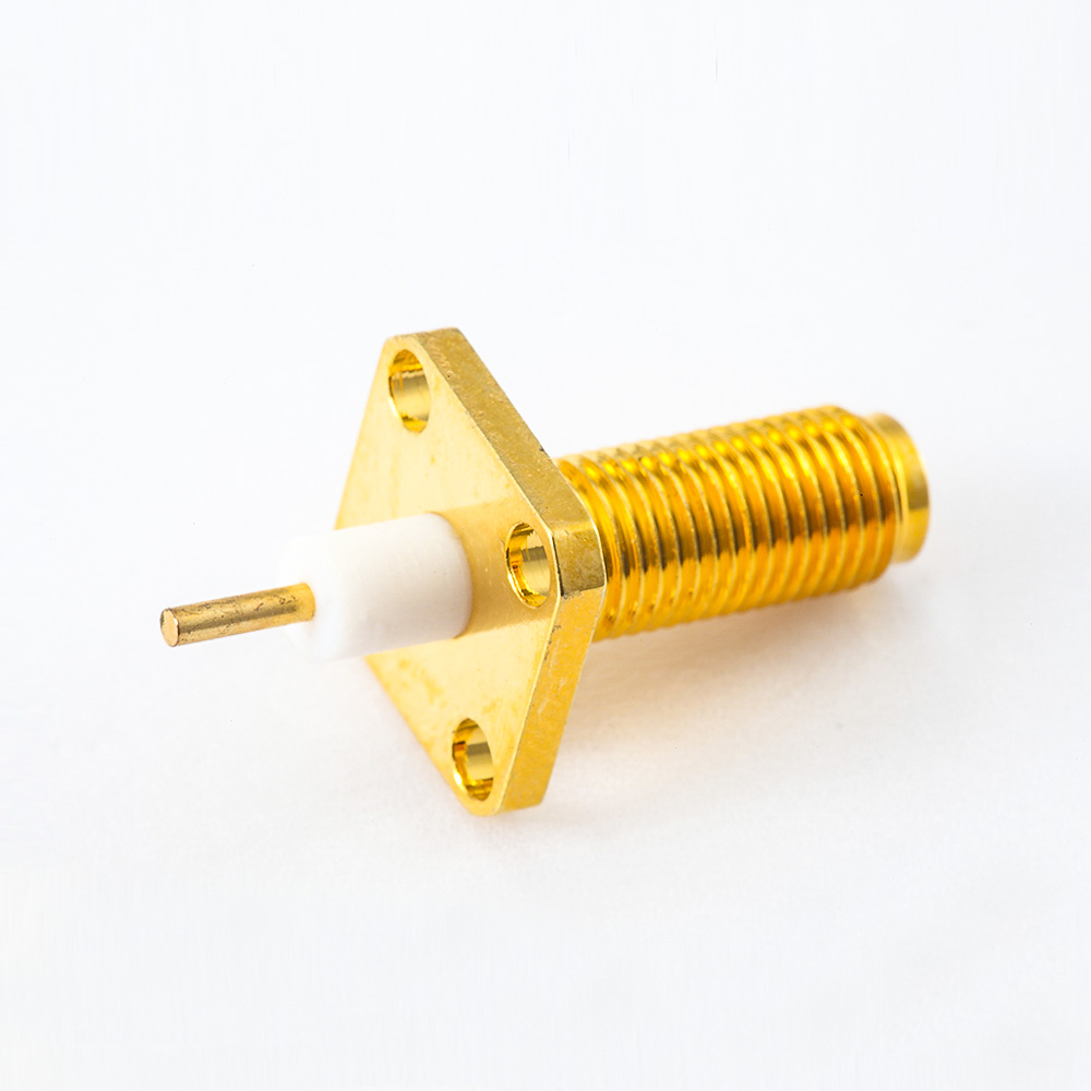 4孔法蘭SMA連接器母頭直式PCB安裝焊板