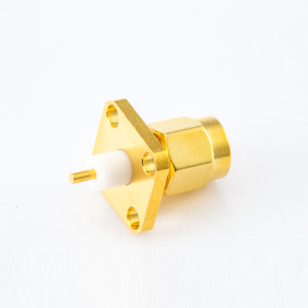 面板安裝SMA公頭連接器直式PCB安裝焊板4孔法蘭