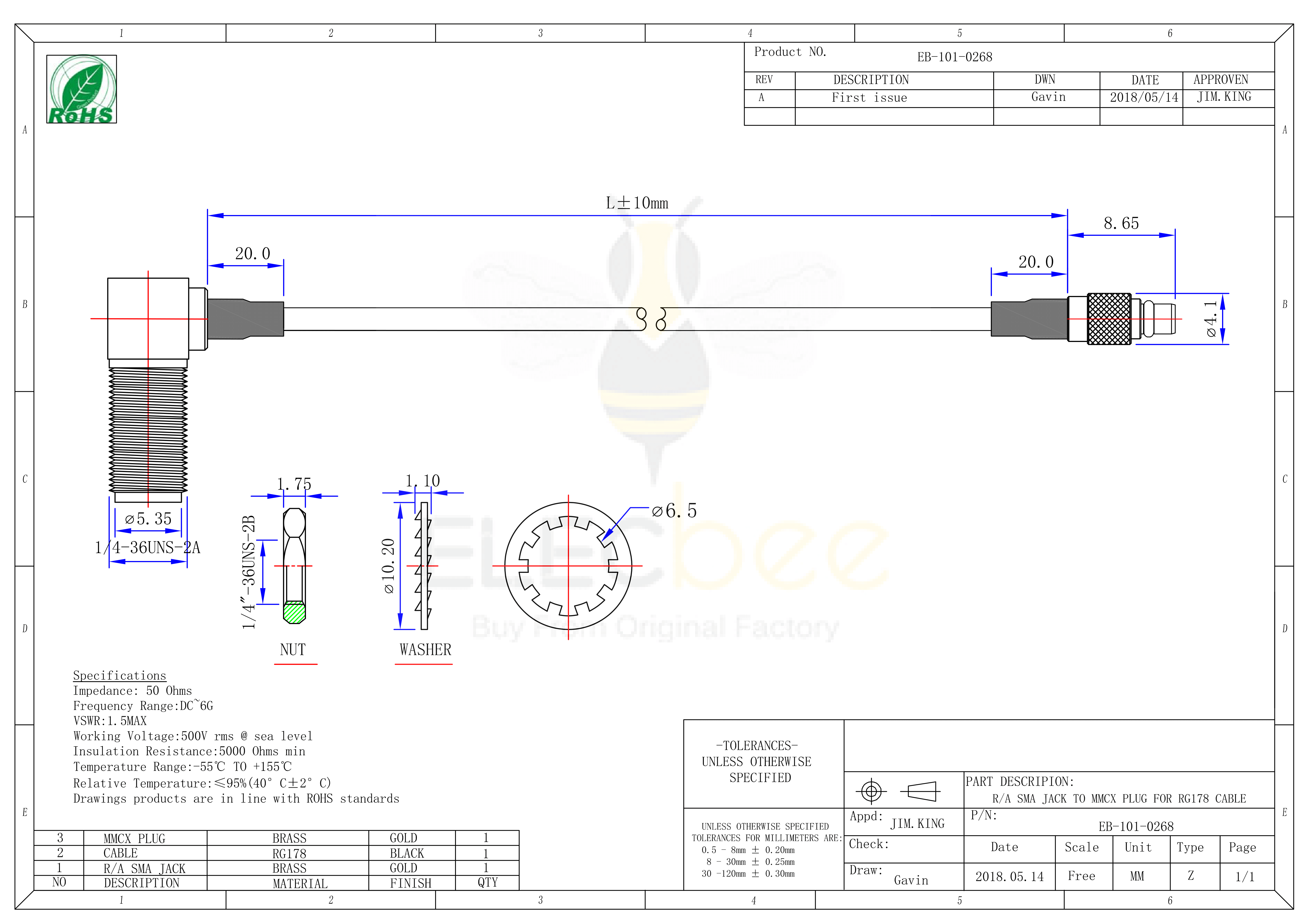 標(biāo)簽:RF線材,RG178同軸線纜,SMA彎式連接器,MMCX直式連接器,母轉(zhuǎn)公