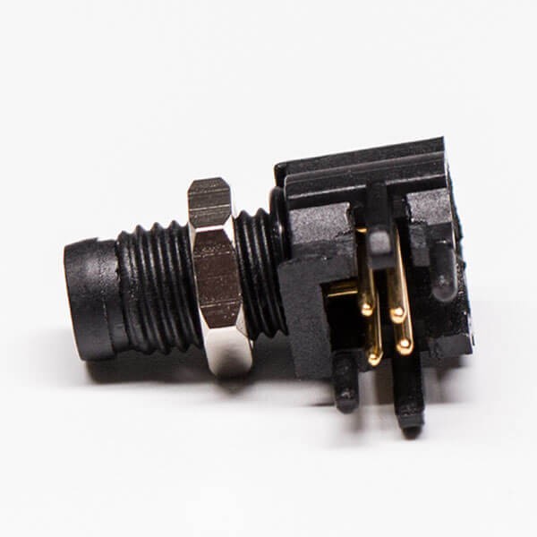 料號(hào):EB-400-1054 標(biāo)簽:M8, 4芯, A編碼, 板端插座, 公, 前鎖板, 彎的, 插板, 不帶屏蔽