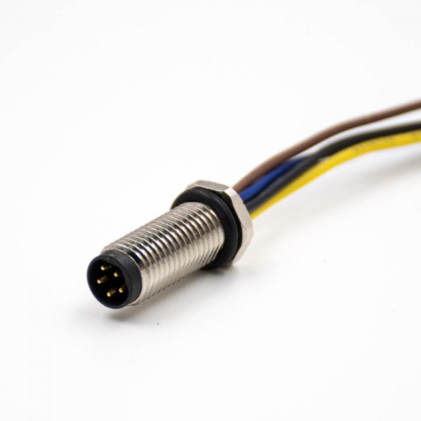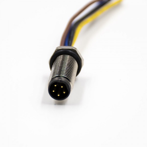 料號:EB-400-1204 標簽:M8,5芯,B扣,公頭,直式,前鎖板,板端插座,接線,焊接式,帶屏蔽,防水,24AWG,1M