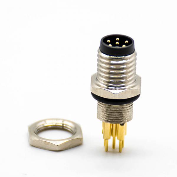 料號(hào):EB-400-1264 標(biāo)簽:M8板端插座,A扣,180°,6芯,公頭,接PCB板,焊接式,后鎖板,防水
