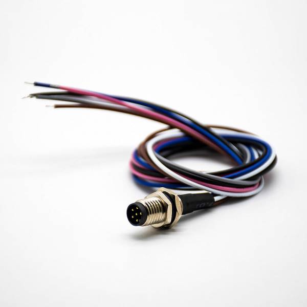 料號:EB-400-1270 標簽:M8,板端插座,A扣,6芯,直式,公頭板端,焊線,后鎖板,防水,帶屏蔽,0.2M