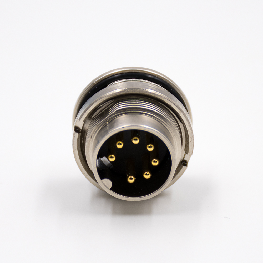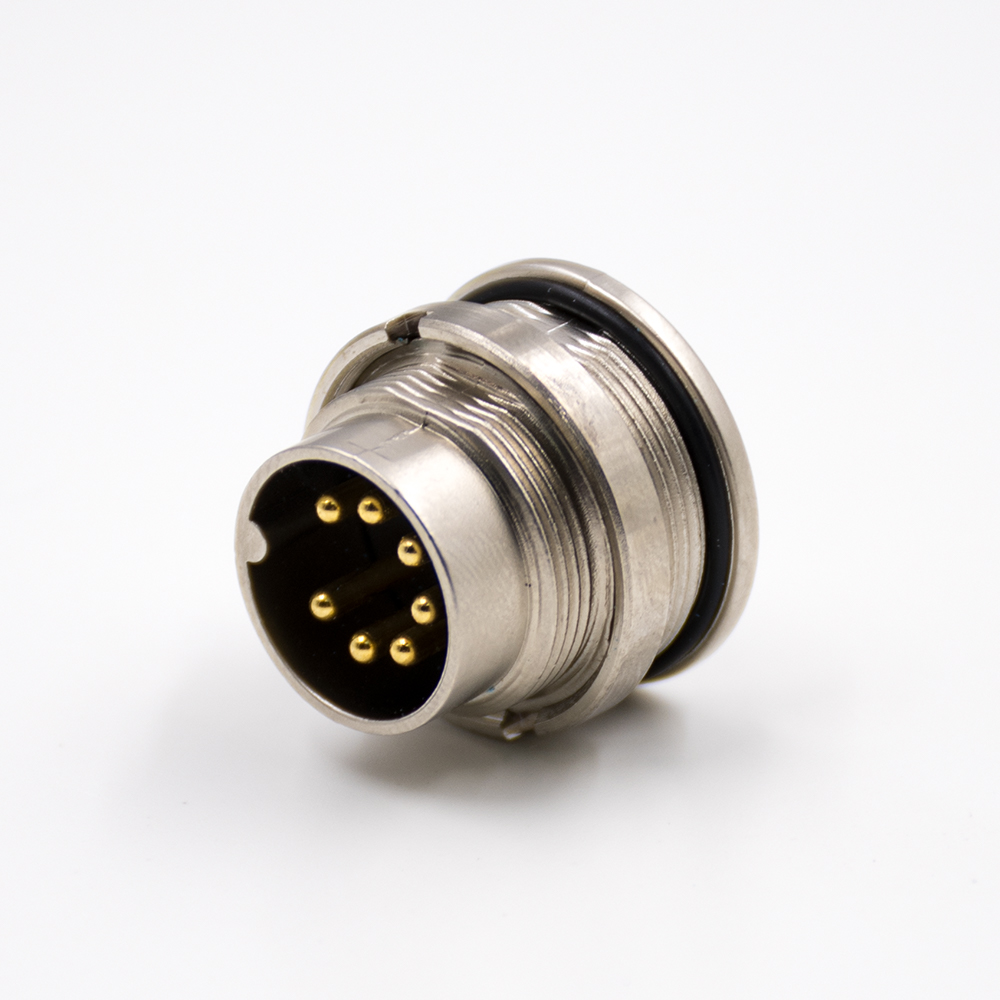插座公頭M16板端插座A扣7芯公頭直式前鎖板接線焊接式傳感器連接器