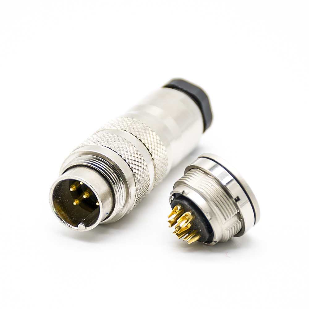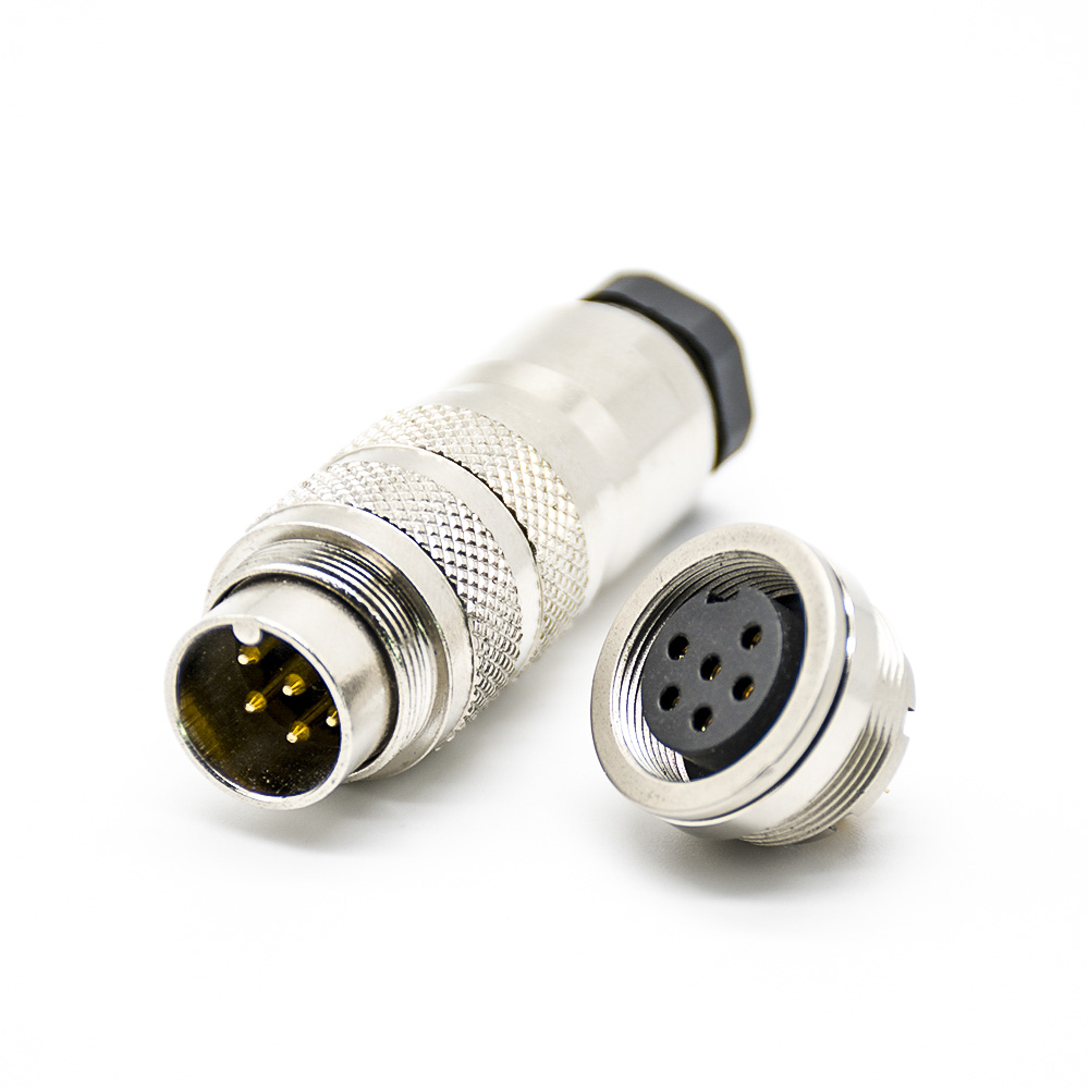 M16工業(yè)連接器6芯公母一套公插頭母插座直式接線焊接式后鎖板帶屏蔽