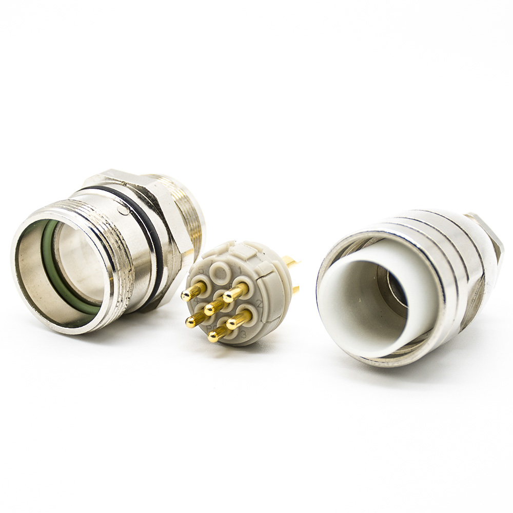 M23工業(yè)連接器圓形8A 20A母插頭防水組裝信號(hào)轉(zhuǎn)用連接器