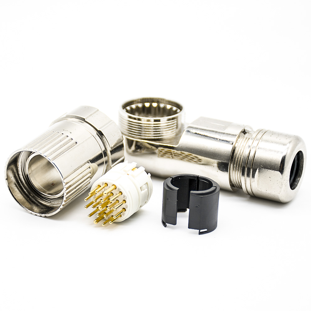 M23彎插頭19芯針公頭接線焊線帶屏蔽