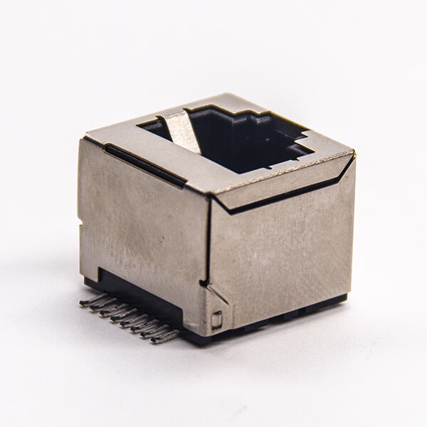 標(biāo)簽:RJ45插座,8P8C,單端口,1*1,直式180°,觸頭鍍金,貼板,PCB板安裝,帶屏蔽,不帶燈,不帶濾波