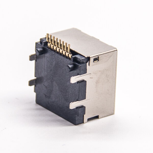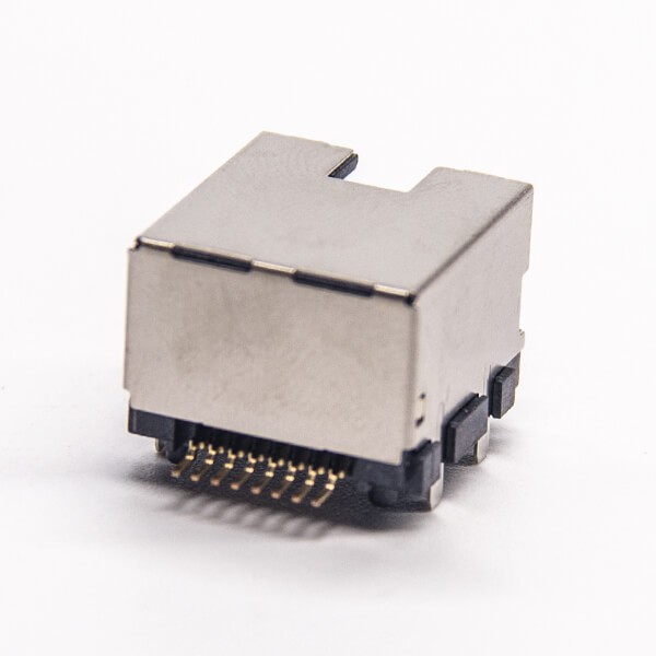 單口rj45母座90度不帶燈貼板式接PCB板帶屏蔽
