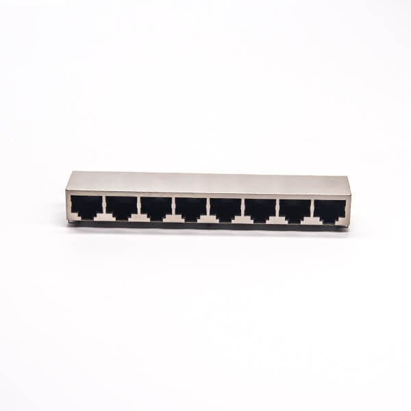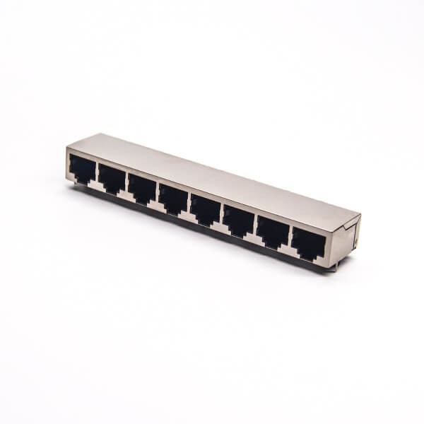 標(biāo)簽:RJ45插座,8P8C,8端口,1*8,彎式90°,觸頭鍍金,插孔,PCB板安裝,帶屏蔽,不帶燈,不帶濾波