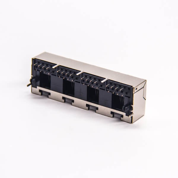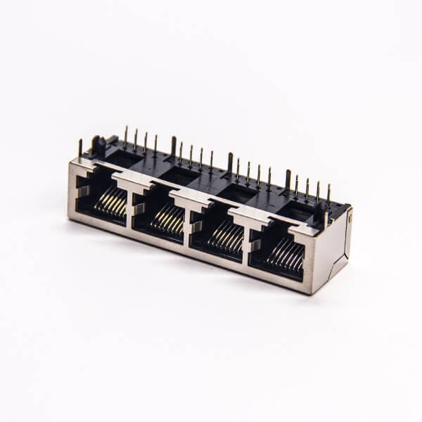 標(biāo)簽:RJ45插座,8P8C,4端口,1*4,彎式90°,觸頭鍍金,插孔,PCB板安裝,帶屏蔽,不帶燈,不帶濾波