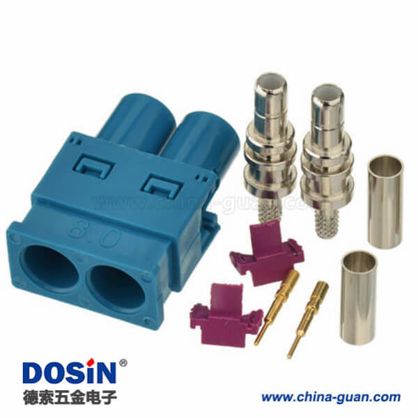 Fakra同軸連接器Z型雙頭公頭水藍(lán)色焊接汽車天線接線RG316 RG174連接器