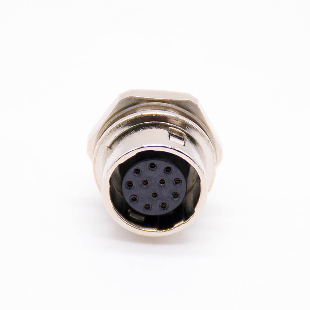 推拉式自鎖12芯孔焊線(xiàn)母插座直式焊杯后鎖板HR10系列微型推拉自鎖連接器