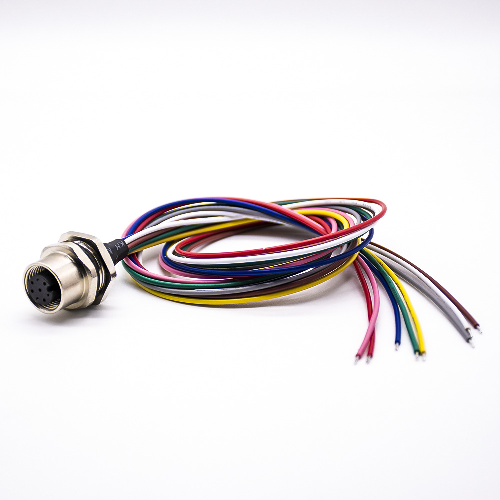 料號(hào):M12-08-A-S-2-S-B-W 標(biāo)簽:M12,板端插座,A扣,8芯,直式,母頭板端,焊線,后鎖板,防水,帶屏蔽,0.2M