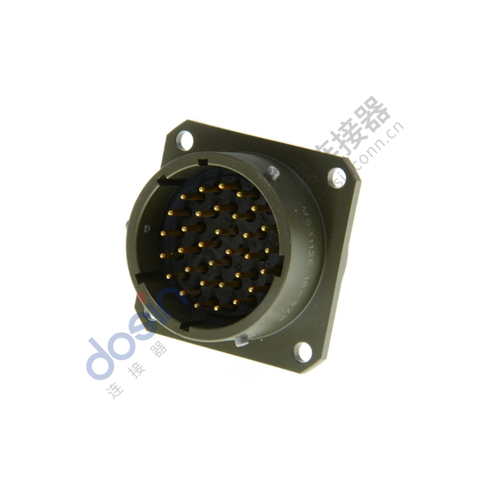 MS3112E18-32P系列連接器32芯公針方形法蘭插座18號(hào)殼體