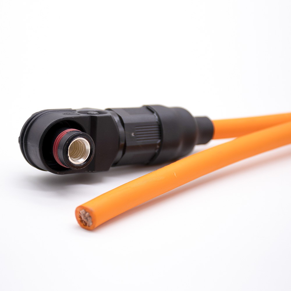 單芯防水連接器120A彎式插頭8mm塑料IP67黑色壓25平方接線30cm