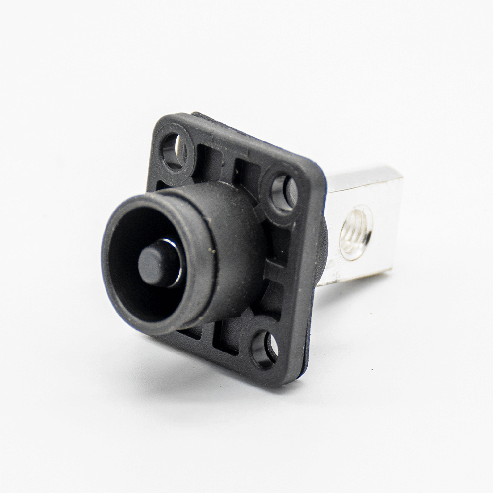 單芯防水連接器IP65 8mm帶孔銅牌彎式插頭插座黑色120A