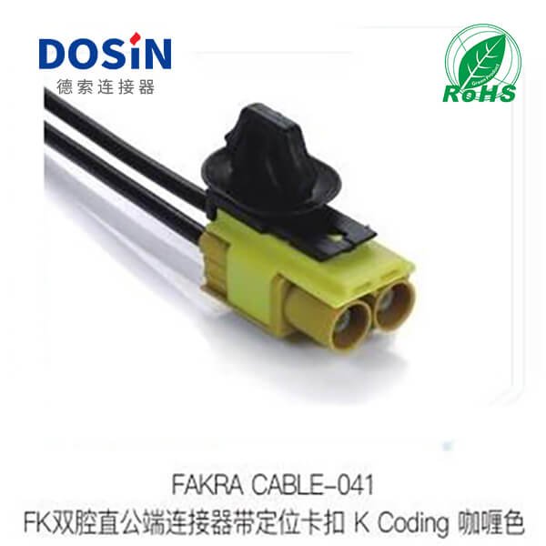 Fakra雙腔直公端連接器帶定位卡扣K-Coding咖喱色生產(chǎn)工廠