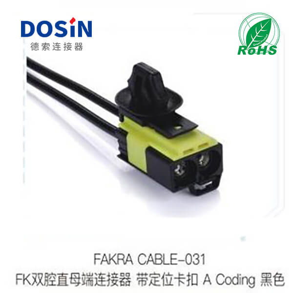 Fakra雙腔直母端連接器帶定位卡扣A-Coding黑色定制打樣ISO認證汽車連接器供應商廠家批發(fā)價格,江門德索連接器有限公司產(chǎn)品達到ROHS、UL、REACH標準。超17年 Fakra雙腔直母端連接器帶定位卡扣A-Coding黑色定制打樣生產(chǎn)經(jīng)驗,免費送樣,交期快,大量現(xiàn)貨庫存,立即撥打電話400-6263-698咨詢。