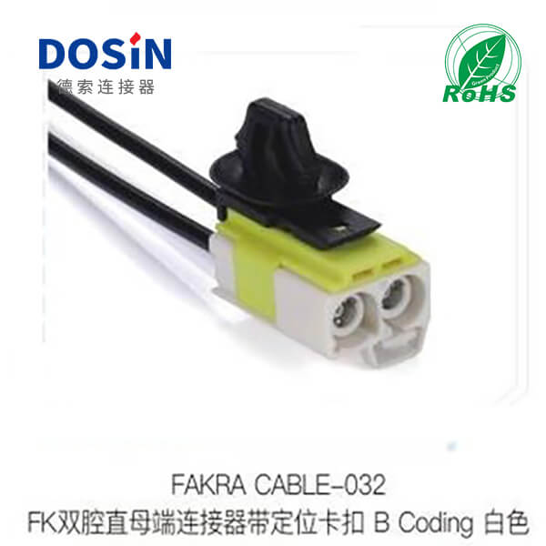 Fakra雙腔直母端連接器帶定位卡扣B-Coding白色定制打樣ISO認證汽車連接器供應商廠家批發(fā)價格,江門德索連接器有限公司產(chǎn)品達到ROHS、UL、REACH標準。超17年 Fakra雙腔直母端連接器帶定位卡扣B-Coding白色定制打樣生產(chǎn)經(jīng)驗,免費送樣,交期快,大量現(xiàn)貨庫存,立即撥打電話400-6263-698咨詢。