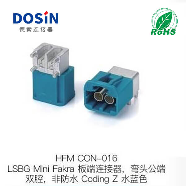 LSBG-Mini-Fakra板端連接器彎頭公端雙腔非防水Coding-Z水藍色采購平臺