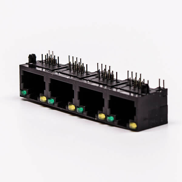 90度rj45帶燈插座母頭黑色1*4全塑4口帶燈接PCB板