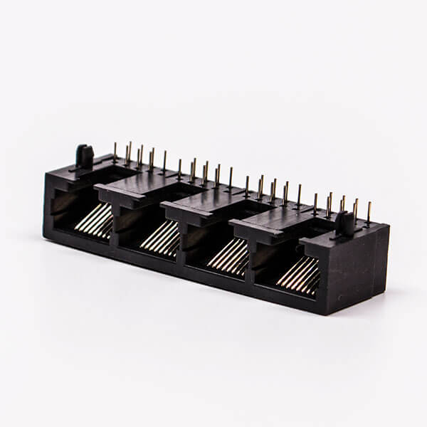 rj45插座接口4口全塑黑色母90度無燈不帶屏蔽接PCB