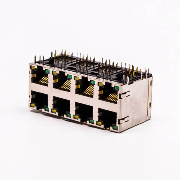 Rj45 8口網(wǎng)絡(luò)插座母頭銅殼90度帶彈片無燈接PCB
